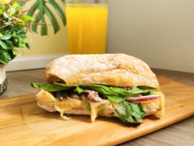 pão francês com gergelim, salame italiano, queijo, alface e tomate